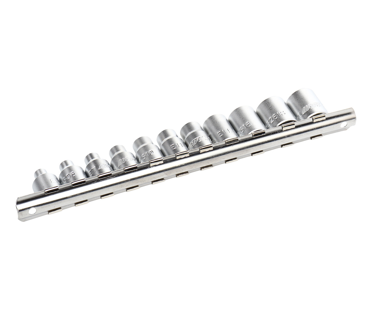 Комплектация: головки 3/8" Dr. размеров E5, E6, E7, E8, E10, E11, E12, E14, E16, E18, E20;