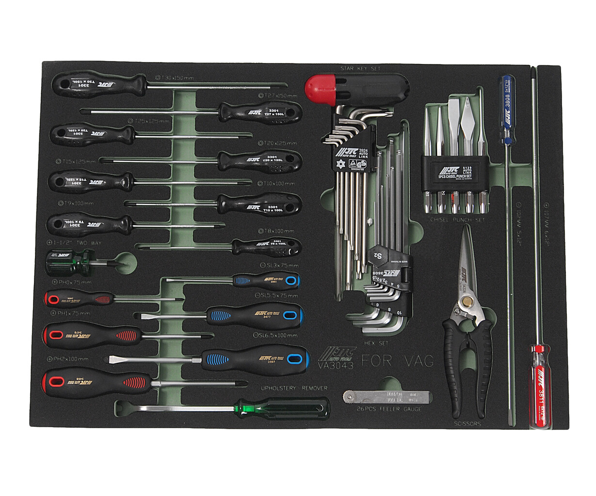 JTC-VA3043 - Набор инструментов 43 предмета слесарно-монтажный (VAG) в ложементе JTC - В комплекте: