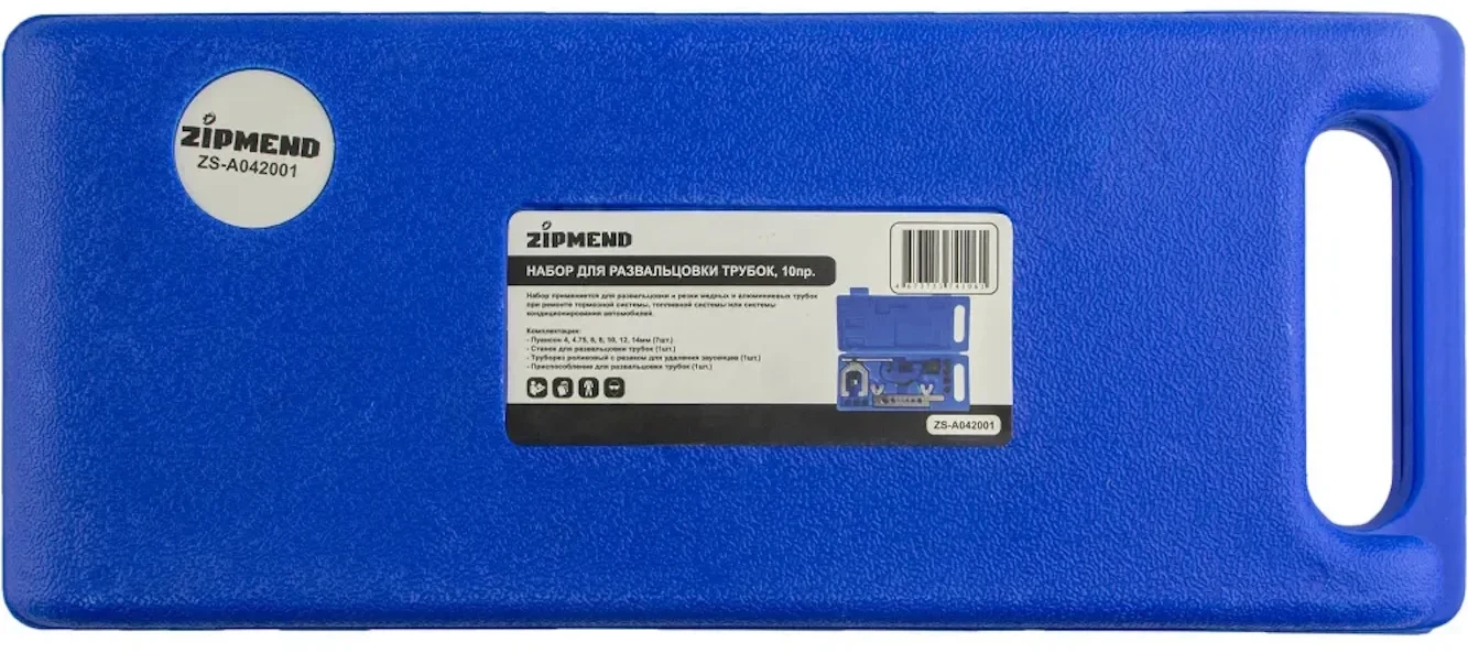 Набор для развальцовки трубок 4, 4.75, 6, 8, 10, 12, 14мм., 10 предметов, ZIPMEND, ZS-A042001 Описание и применение: - Набор ZS-A042001 предназначен для резки и развальцовки медных и алюминиевых трубок при ремонте тормозной системы, топливной системы,...