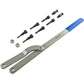 - Благодаря регулируемому захвату (40-220 мм) и комплекту взаимозаменяемых штифтов (d(Ø) 6, 8, 10, 16 мм, по 2 шт., каждого размера) сервисное приспособление полностью универсальное.