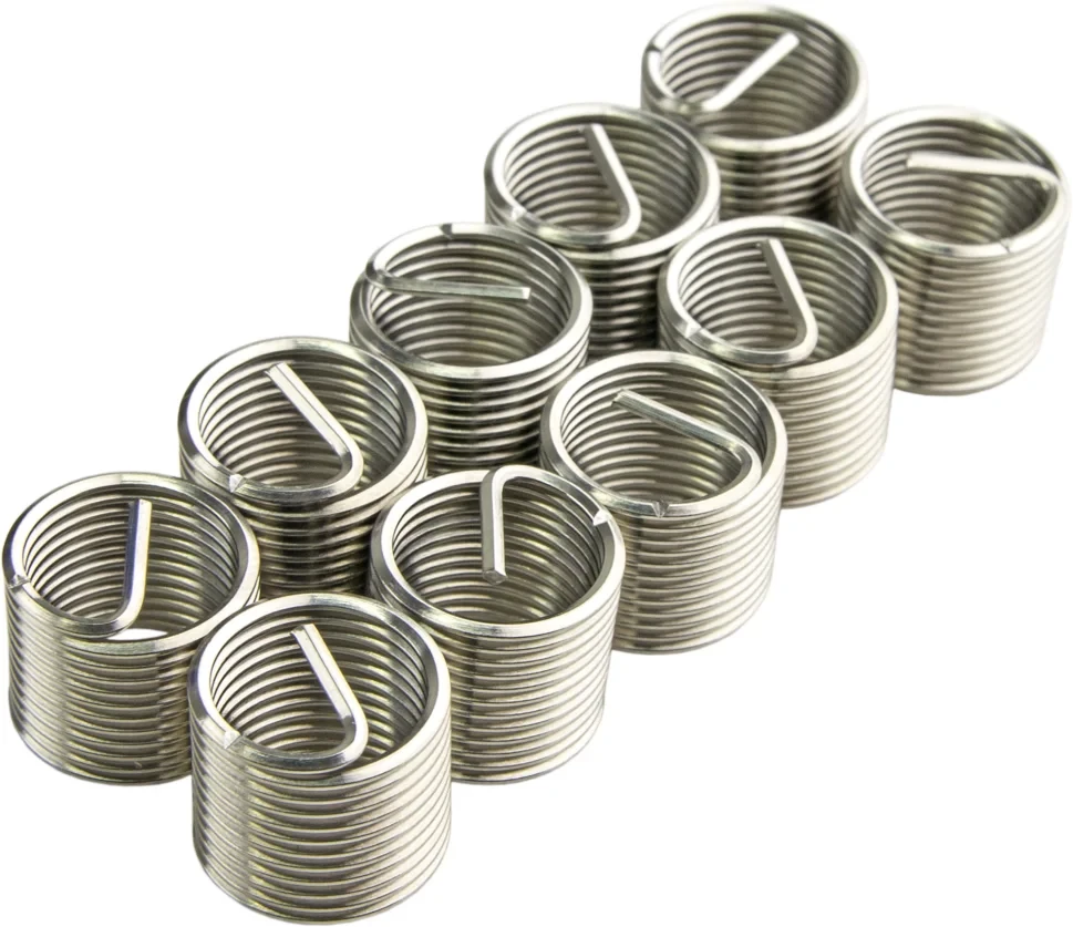 - Вставки имеют форму пружинки или спирали, что позволяет легко вкручивать их в поврежденную резьбу.