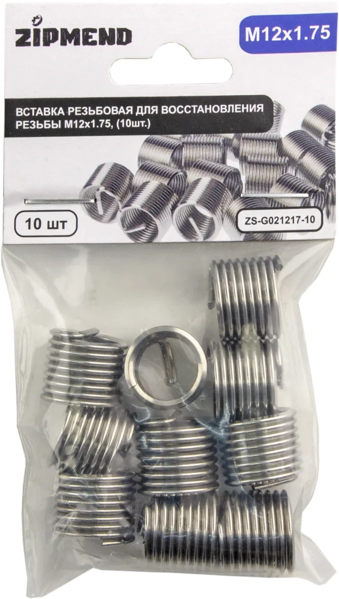 Вставка резьбовая для восстановления резьбы M12 х 1.75 мм., 10 штук, ZIPMEND, ZS-G021217-10.
