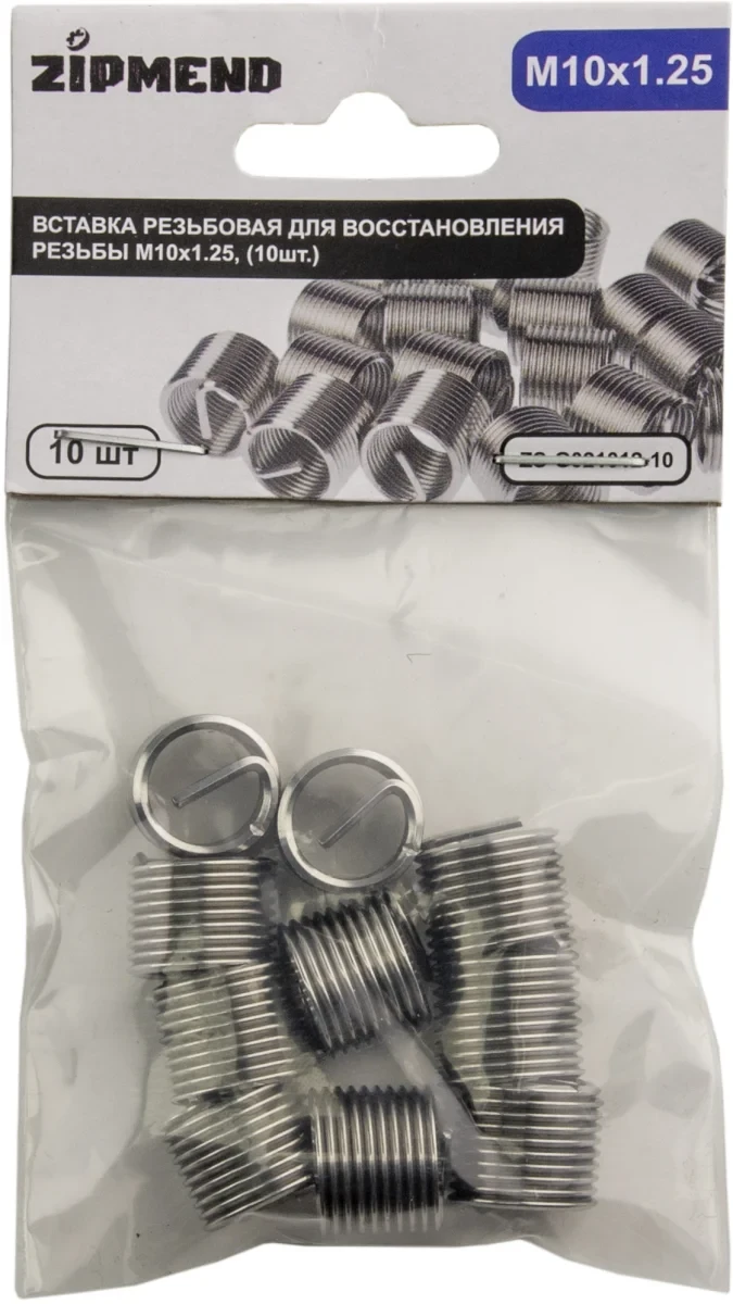 Вставка резьбовая для восстановления резьбы M10 х 1.25 мм., 10 штук, ZIPMEND, ZS-G021012-10.
