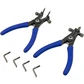 - В комплекте четыре пары сменных наконечника из закаленной стали различного диаметра (0.8, 1.2, 1.4, 2.0 мм) - для монтажа различных типоразмеров стопорных колец.