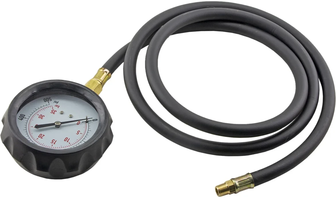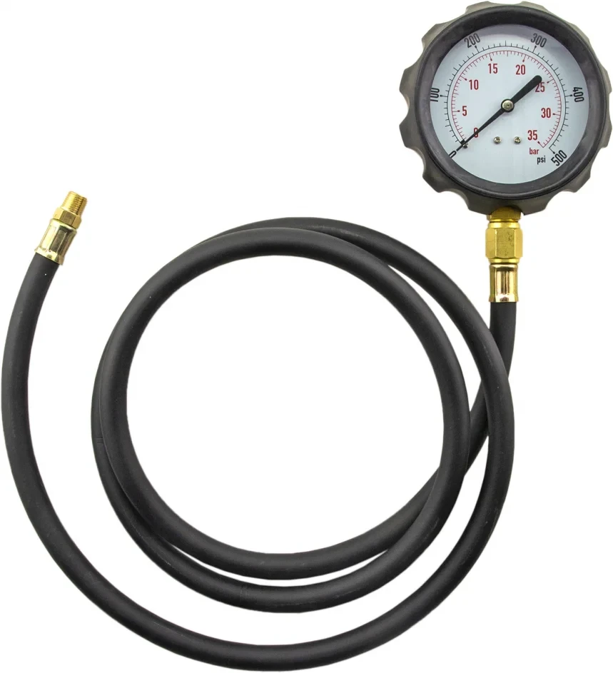 - Манометр с диапазоном измерений от 0 до 35 Bar., позволяют проводить тестирование для большинства дизельных и бензиновых двигателей различных марок автомобилей.
