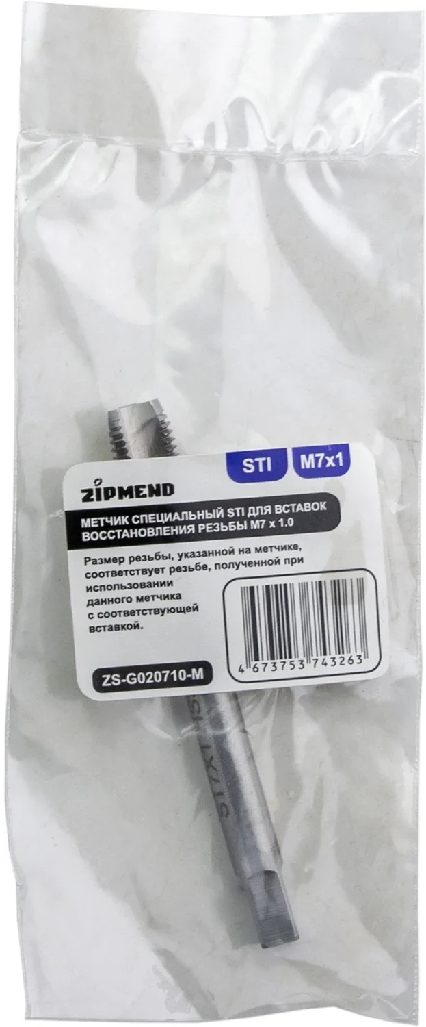 Метчик специальный STI для вставок восстановления резьбы M7 х 1.0, ZS-G020710-M Описание и применение: - Специальный метчик ZIPMEND ZS-G020710-M применяется для нарезания резьбы под специальные резьбовые вставки для восстановления резьбы. - Метчик ST...
