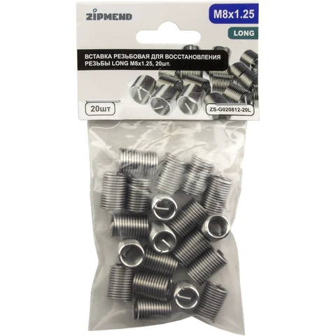 Вставка резьбовая для восстановления резьбы LONG M8 х 1.25, 20 штук, ZIPMEND, ZS-G020812-20L.