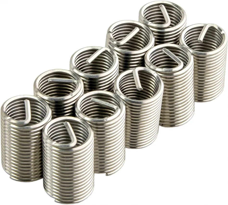 - Вставки имеют форму пружинки или спирали, что позволяет легко вкручивать их в поврежденную резьбу.