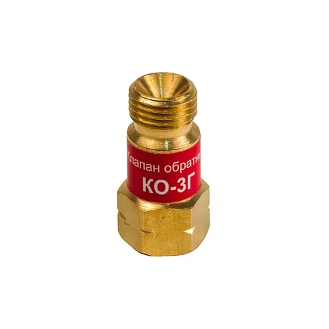 Клапан обратный КЕДР КО-3Г (пропан, ацетилен), на вход резака /горелки, М16х1,5LH левая резьба — предназначен для защиты резиновых рукавов, газовых редукторов и газовых баллонов от проникновения в них обратных ударов пламени и предотвращения обратного тока газа.