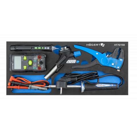 Вкладыш для инструментальных шкафов с комплектом отобранных инструментов, необходимых для электромонтажных работ, незаменимый в инструментальном шкафу каждого профессионала.