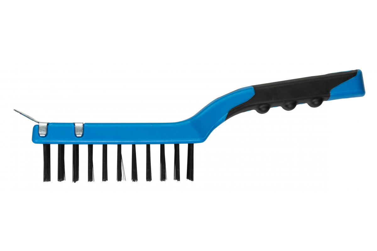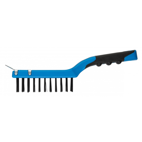 Щетка предназначена для удаления ржавчины, краски, лака и сложных загрязнений, а также для очистки сварных швов и резьбы. Твердый пластиковый скребок на конце головки облегчает и ускоряет работу. Щетка изготовлена из твердой стальной проволоки, прочно ...