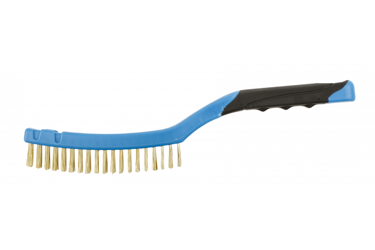 • Щетка предназначена для удаления ржавчины, краски, лака, сварных швов и грязи преимущественно с поверхностей из цветных металлов. Щетка изготовлена из латунной проволоки, прочно закрепленной в пластиковом корпусе. Рукоятка профилирована для облегчения захвата инструмента и повышения эффективности очистки.