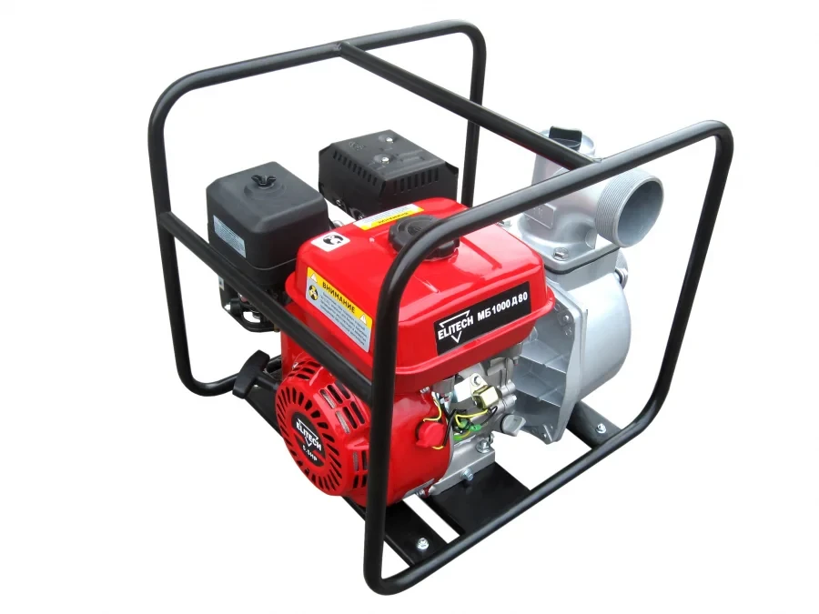 Мотопомпа МБ 1000Д80 с 4х тактным бензиновым двигателем для перекачивания чистой и слабозагрязненной воды с диаметром частиц до 5мм. Ручной стартер.Металлическое рабочее колесо. Максимальный напор 30 метров. Производительность 1000л/мин (60м.куб./час)