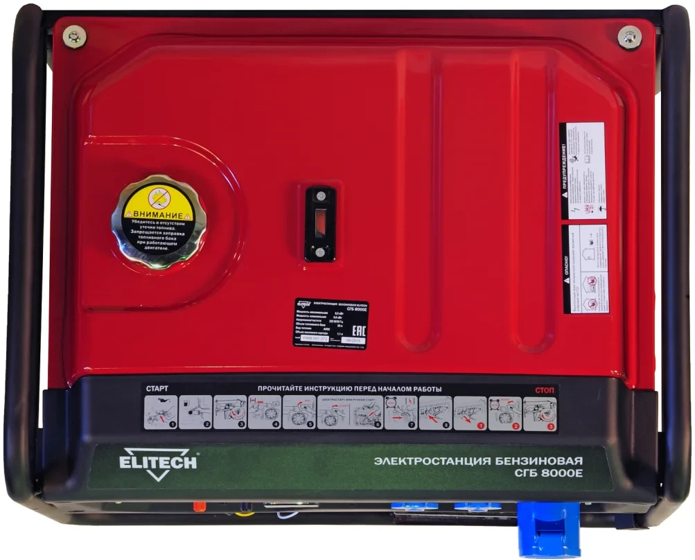 - Электростанция СГБ 8000E с четырехтактным бензиновым двигателем - это отличное решение при выборе автономного источника энергии для эксплуатации на строительных площадках, в различных мастерских, а также в быту для автономного энергоснабжения электроинструмента, садовой техники и прочих устройств суммарной мощностью не более 6 кВт.