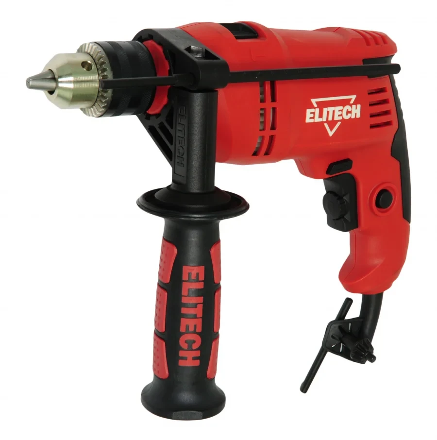 Дрель ударная ELITECH ДУ 650РЭ мощностью 650 Вт имеет два режима работы - сверление и сверление с ударом. Режим обычного сверления предназначен для работы с деревом и материалов на его основе, металлом, пластмассой, гипсокартоном, керамикой и другими аналогичными материалами. Режим сверления с ударом предназначен для работы с кирпичом и аналогичными легкими минеральными строительными материалами, например газо и пенобетоном. Для работы в этом режиме используется сверло с твердосплавной напайкой. Оба режима широко используются при проведении ремонтных и отделочных работ, а также обычной хозяйственной деятельности. Скорость вращения на холостом ходу регулируется в диапазоне 0-3000 об/мин. В режиме сверления с ударом производится 48000 ударов в минуту. Для крепления сверл используется надежный ключевой патрон, ключ от которого имеет собственное место хранения - специальное отверстие у основания сетевого кабеля.
