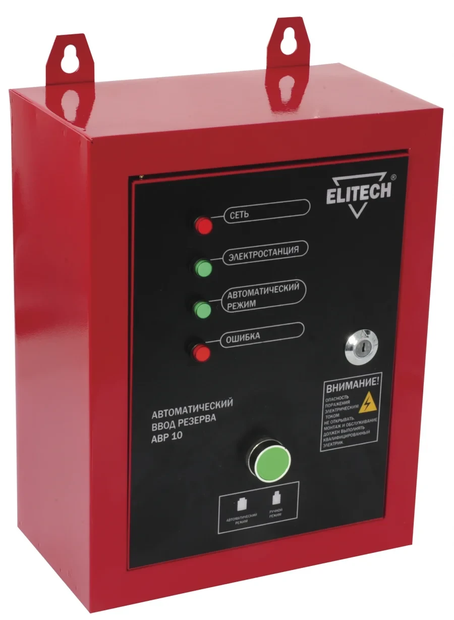 Блок автоматического ввода резерва АВР 10 для работы в автоматическом режиме однофазных электростанций. Максимальная мощность 10кВт. Максимальный ток 43А. Напряжение 230В.