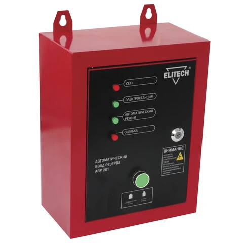 Блок автоматического ввода резерва АВР 20Т предназначен для работы в автоматическом режиме трехфазных электростанций. Максимальная мощность 20кВт. Максимальный ток 38А. Напряжение 380В.