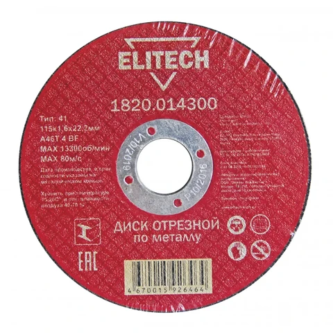 - Диск отрезной 115х1,6 сталь Elitech 1820.014300, 184651;