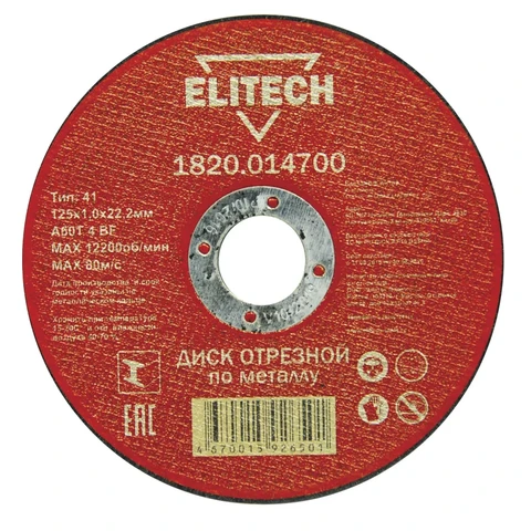 - Диск отрезной 125х1,0 сталь Elitech 1820.014700, 184655;