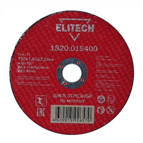 - Диск отрезной 150х1,8 сталь Elitech 1820.015400, 184662;