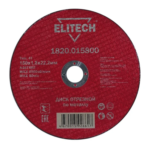 - Диск отрезной 180х1,8 сталь Elitech 1820.015800, 184666;