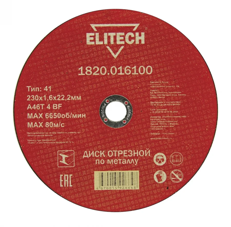 Технические характеристики отрезного диска Elitech, 184669: