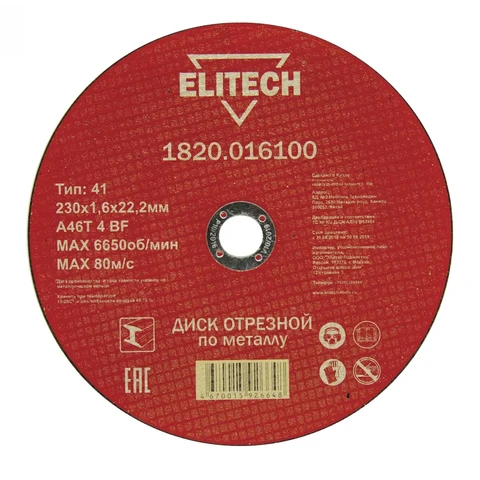 - Диск отрезной 230х1,6 сталь Elitech (1820.016100), 184669;