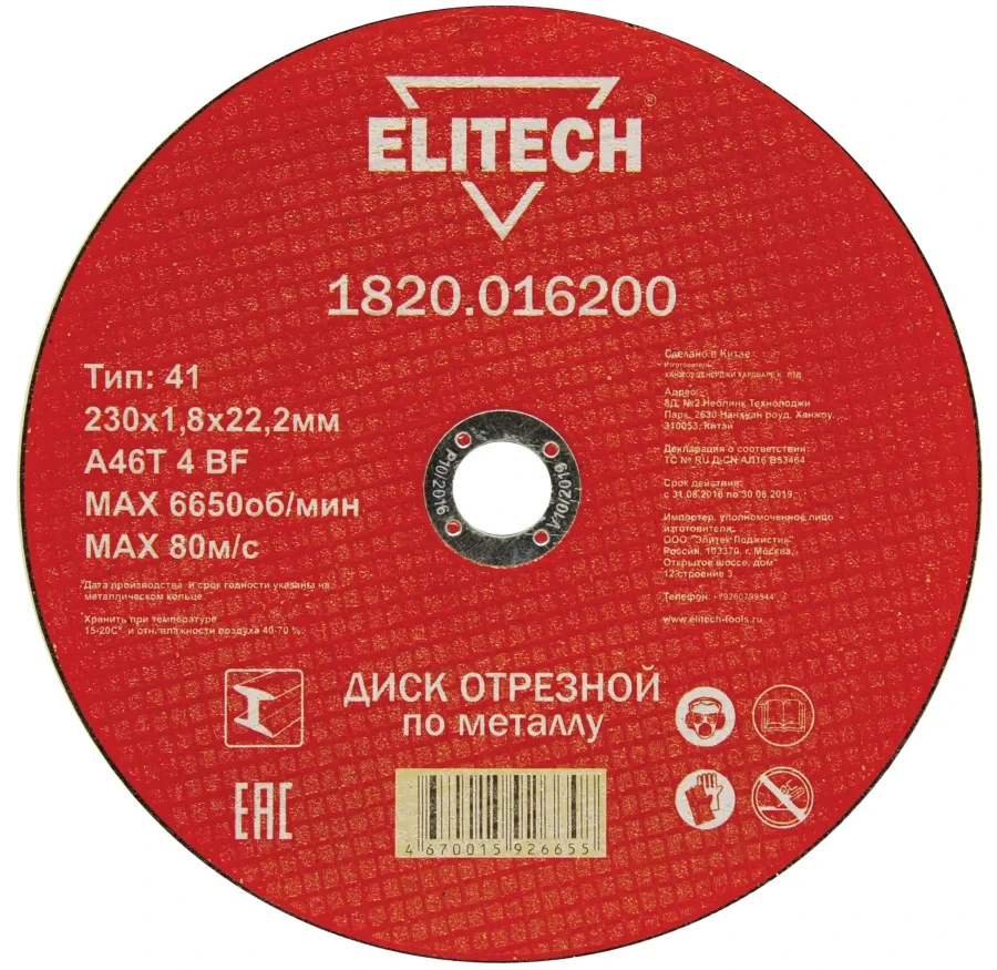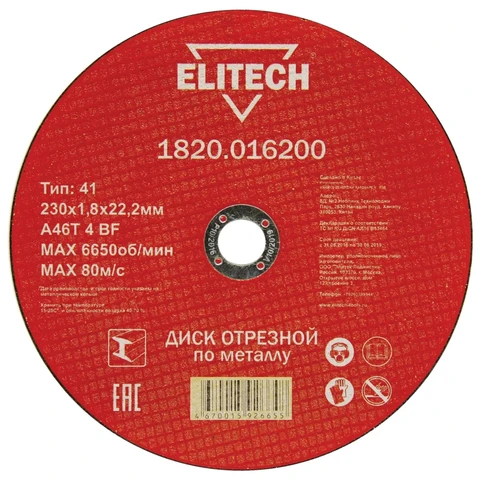 Технические характеристики отрезного диска Elitech, 184670: