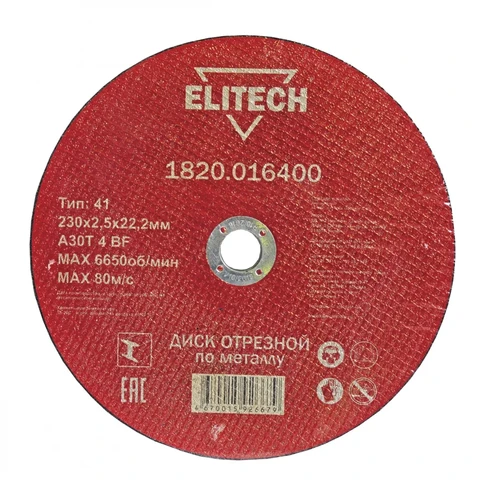 - Диск отрезной 230х2,5 сталь Elitech (1820.016400), 184672;