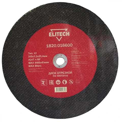 - Диск отрезной 355х3,2х25,4 сталь Elitech (1820.016600), 184674;