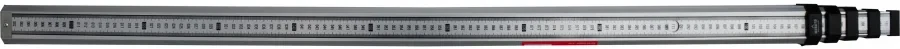 Данная телескопическая рейка на оборотной стороне имеет пять секций, на каждой из которых нанесена миллиметровая шкала снизу до верху. На лицевой стороне расположена шкала «Е», которая обозначена черно/красным цветом.