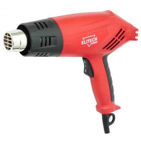 Термопистолет (технический фен) ELITECH ТВ 1800 Промо используется при следующих видах работ : снятие лакокрасочных покрытий с деревянных поверхностей, пайка, сварка и формовка пластика, осаживание термоусадочных материалов, ускорение процессов склеивания, пайка мягким припоем и лужение, сушка и размораживание, сварка и резка листовых и рулонных материалов (линолеума и подобных). Инструмент имеет два режима работы : с температурой 350 градусов (расход воздуха 250 л/мин) и 550 градусов (500 л/мин). Есть защита от перегрева. Длина сетевого кабеля 2 метра. Комплектация : понижающее сопло, плоское сопло, стеклозащитное сопло, рефлекторное сопло, руководство по эксплуатации.