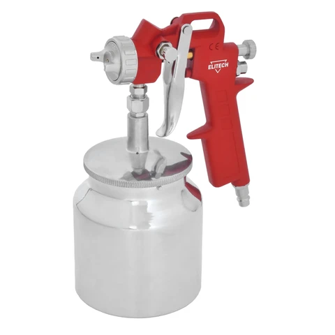 Пневмокраскопульт ELITECH 0704.010900 с нижним металлическим бачком предназначен для нанесения лакокрасочных материалов на различные поверхности методом распыления. Пневмокраскопульт обладает высокой эффективностью переноса краски.