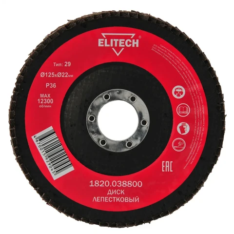 - Диск лепестковый Ø125мм., Р36, Elitech 1820.038800;