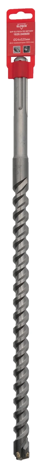 - Бур SDS-max 24х520 мм., Elitech 1820.040600 - предназначен для сверления отверстий в бетоне, кирпичной кладке и большинстве видов камней.