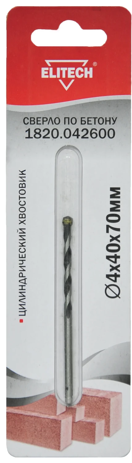 - Сверло 4х70мм., бетон, Elitech 1820.042600;