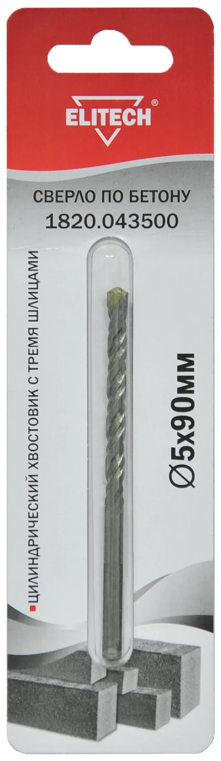 - Сверло 5х90мм., 3 шлица, бетон, Elitech 1820.043500;