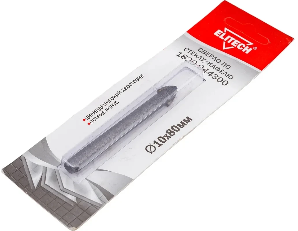 - Сверло 10х80мм., стекло, Elitech 1820.044300;