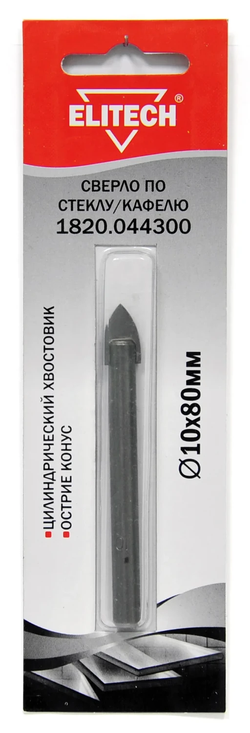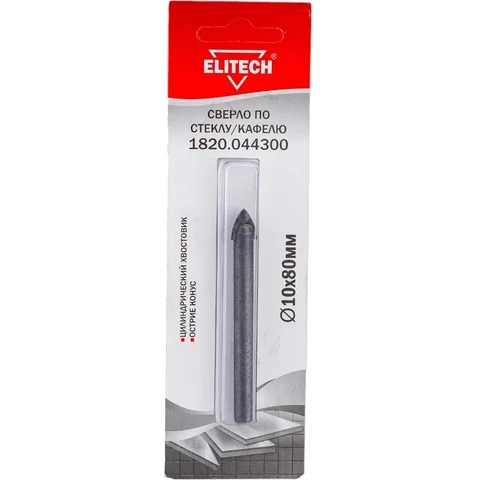 Сверло 10х80мм., стекло, Elitech 1820.044300, 187555