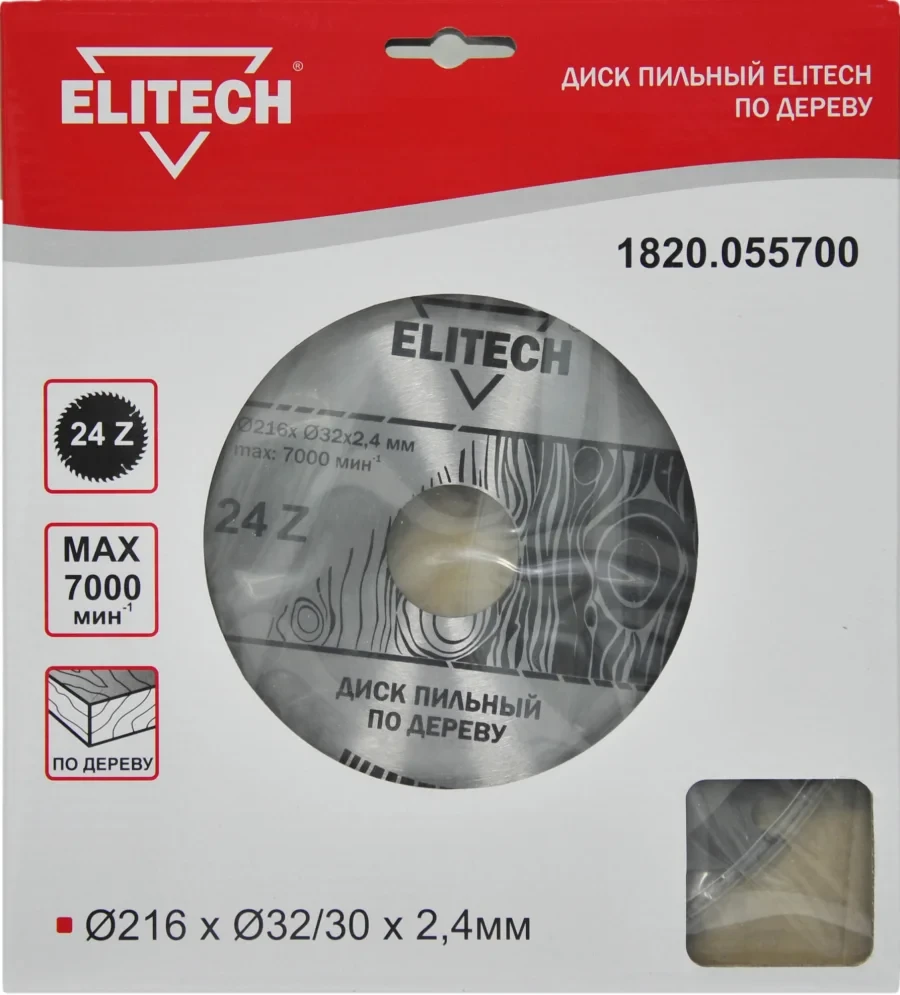 Диск пильный 216х32/30 24зуб Elitech 1820.055700