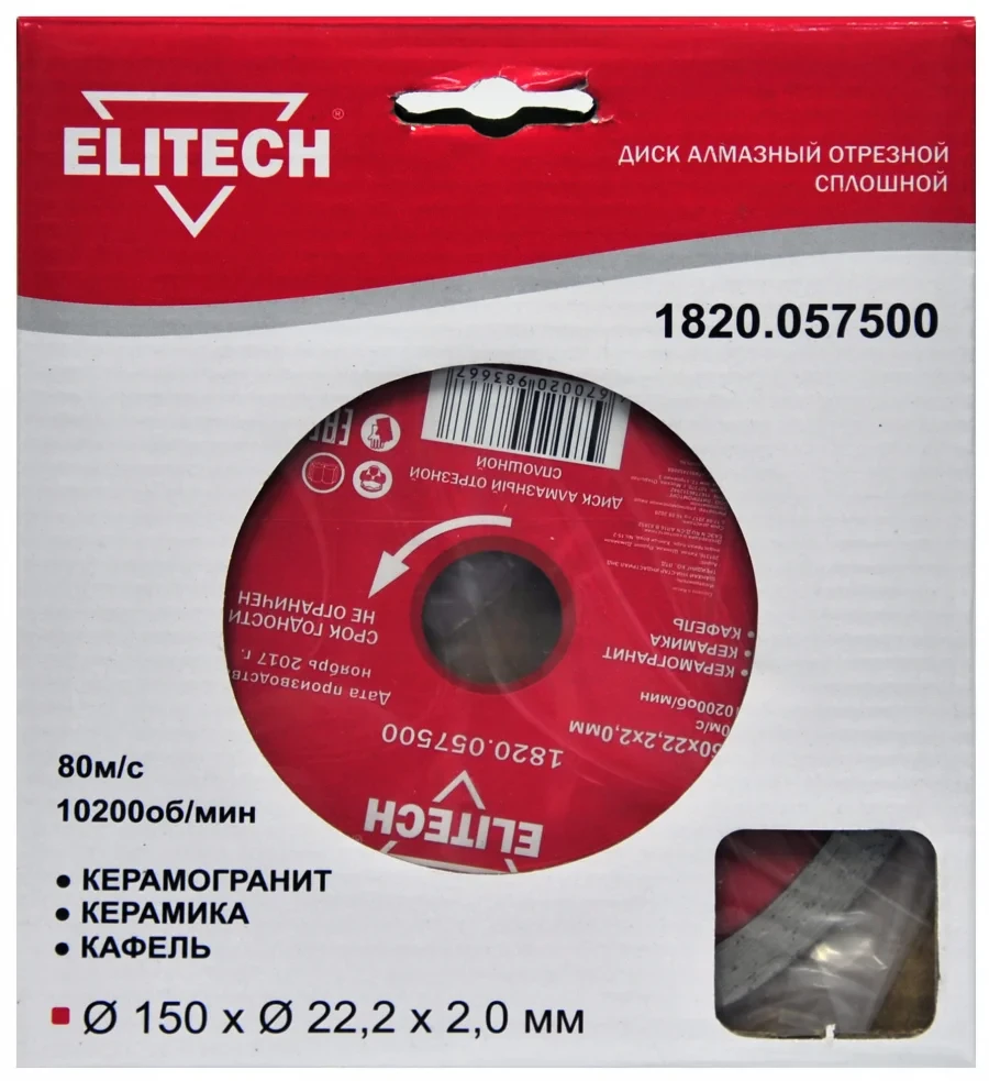 Диск алмазный 150х22.2 плитка Elitech 1820.057500