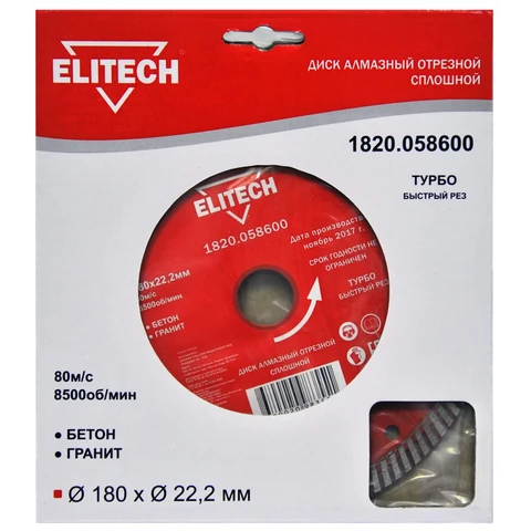 Диск алмазный 180х22.2 турбо Elitech 1820.058600