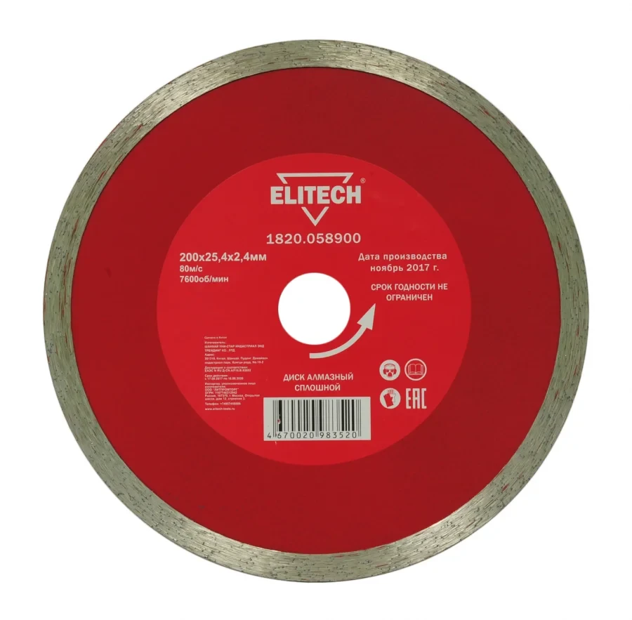 Диск алмазный 200х25,4 плитка Elitech 1820.058900