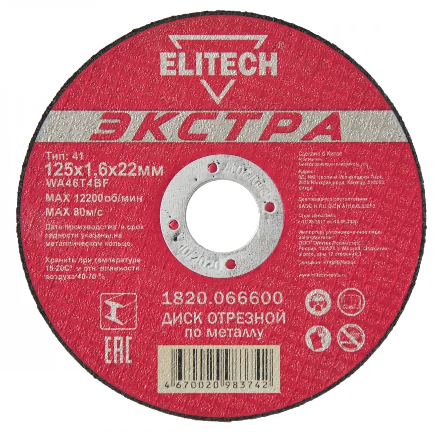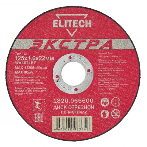 Диск отрезной 125х1,6 сталь Elitech 1820.066600
