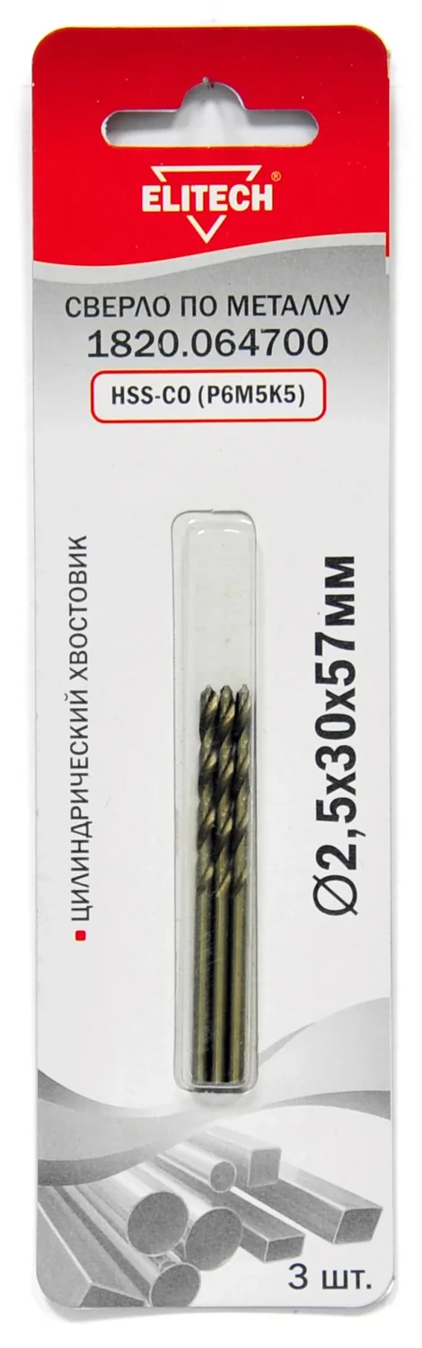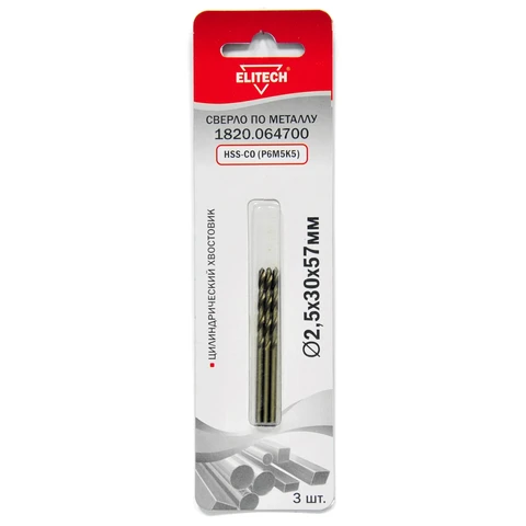 Кобальтовое сверло 2.5х57 3шт Elitech 1820.064700
