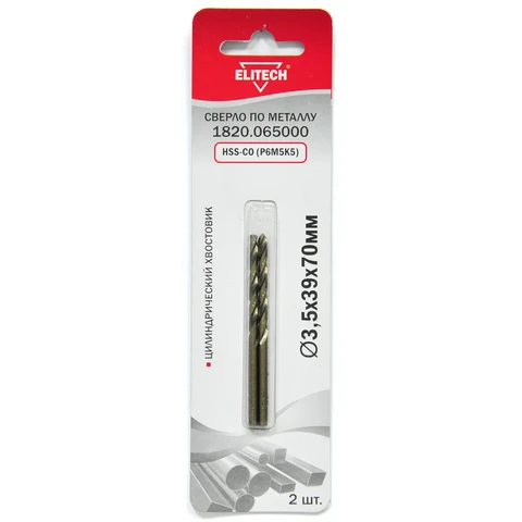 Кобальтовое сверло 3.5х70 2шт Elitech 1820.065000