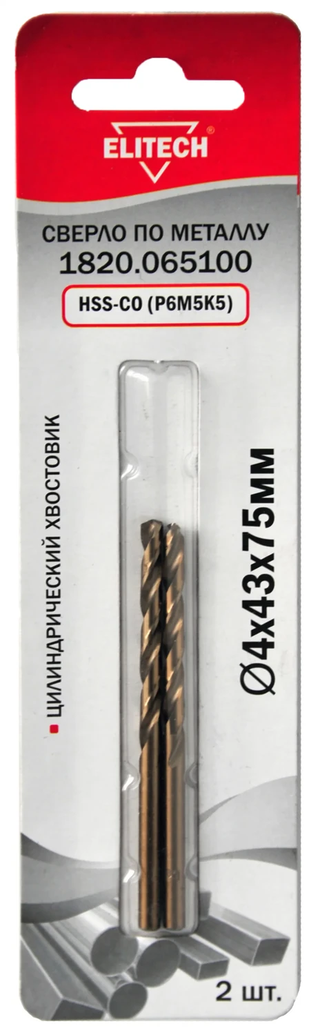 Кобальтовое сверло 4.0х75 2шт Elitech 1820.065100