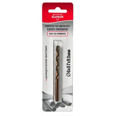 Кобальтовое сверло 6.0х93 1шт Elitech 1820.065600
