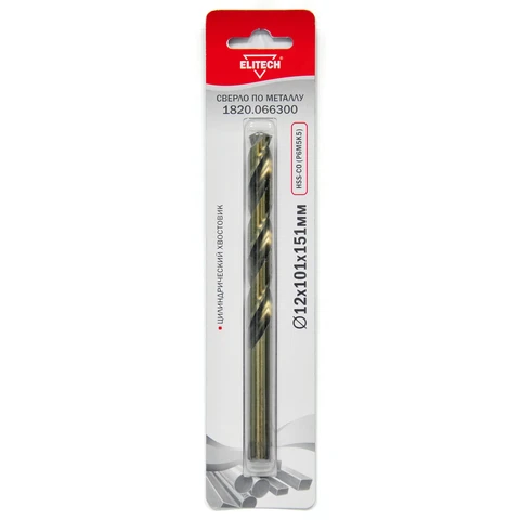 Кобальтовое сверло 12.0х151 1шт Elitech 1820.066300
