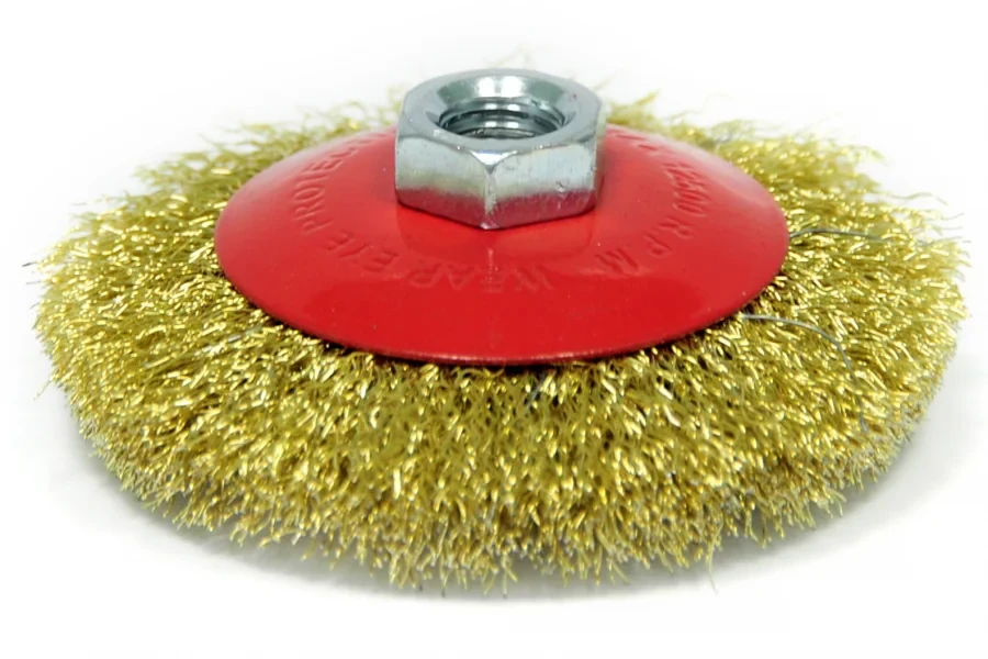 Щетка для УШМ, 100 мм, М14, 'тарелка', латунированная витая проволока 0,3 мм